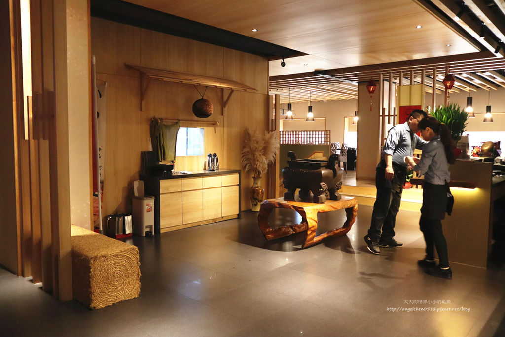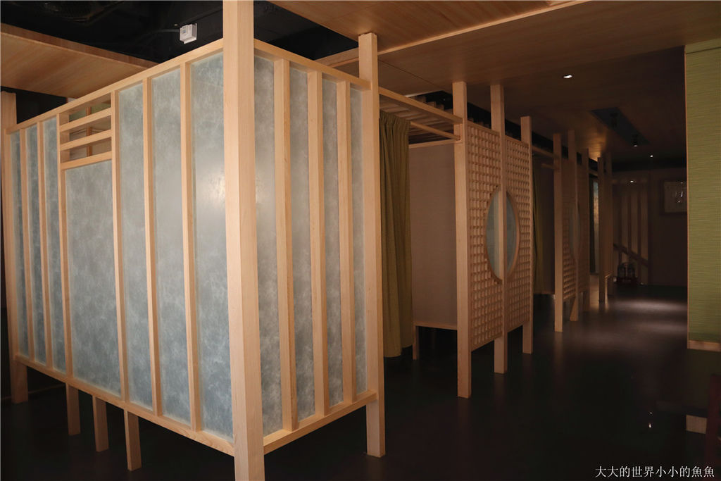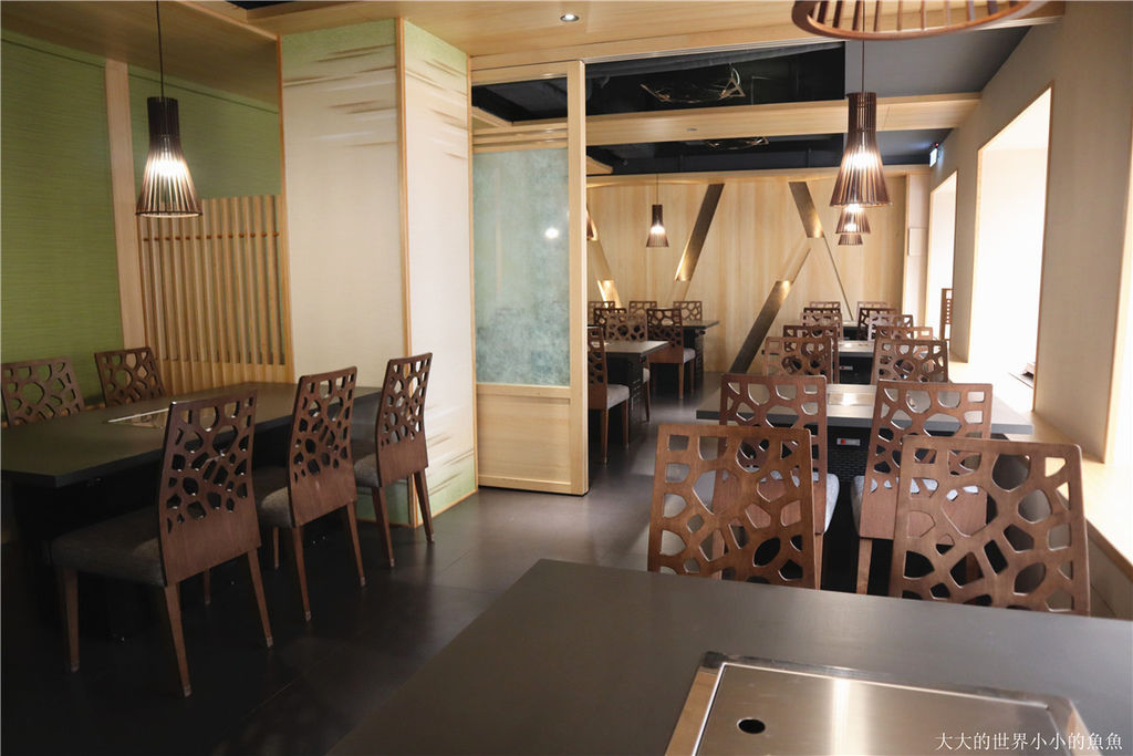 店內使用了大量的淺色木紋、日式風格的裝潢,