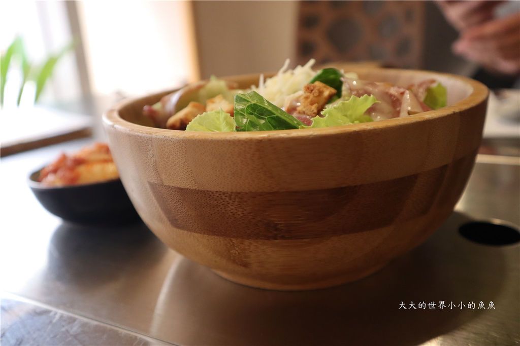 份量非常豪氣的木碗和牛沙拉,